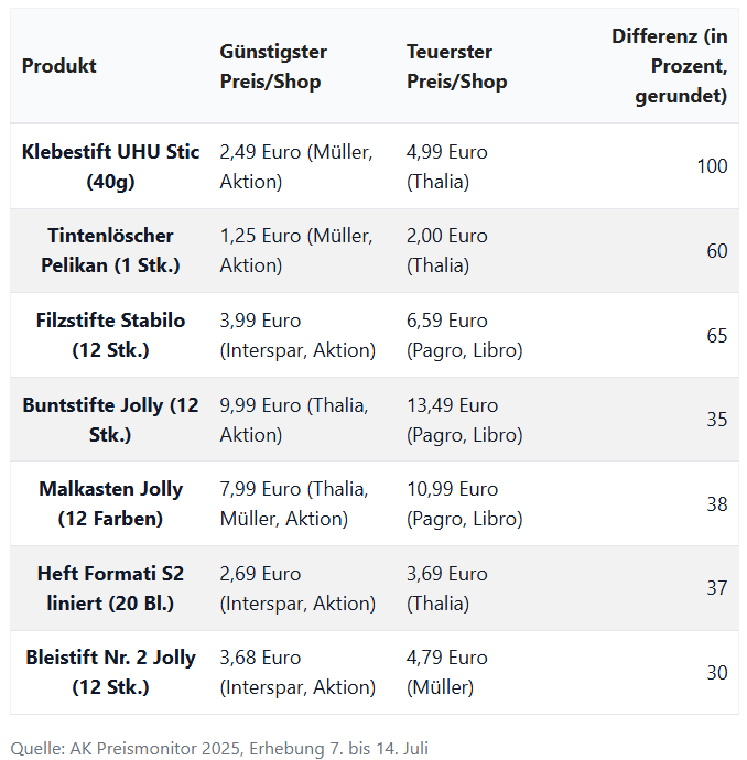 - Arbeiterkammer warnt vor Preisunterschieden bei Schulsachen – Einfache Sprache